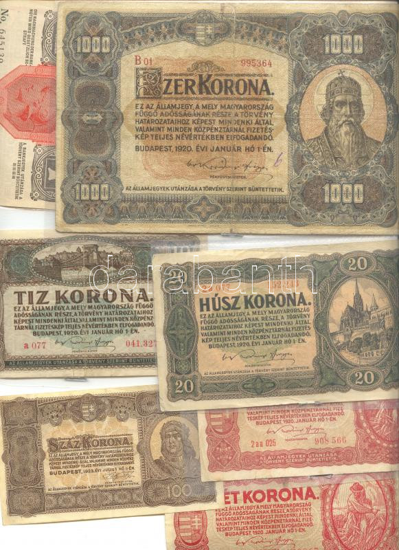 Leírás: 1916-1923. 1K - 1000K 7db különféle bankjegy T:II,III,III-