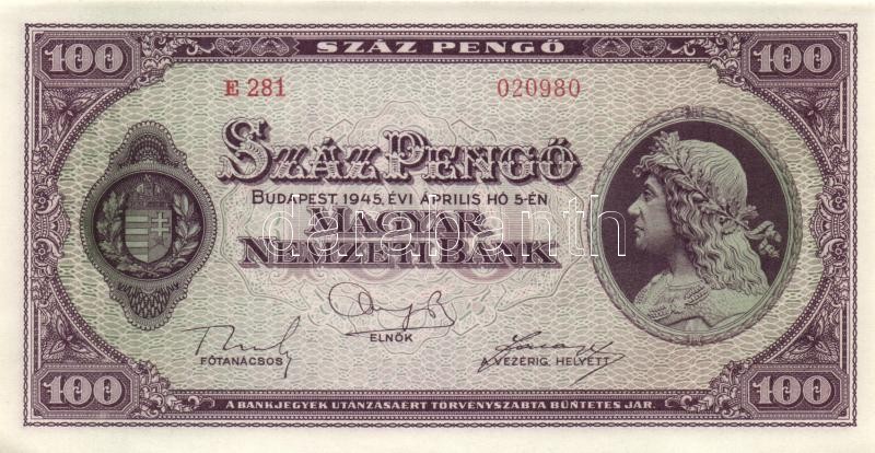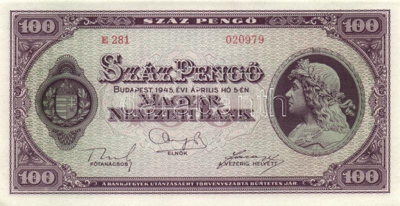 Leírás: 1945. 100P (3x) egymás utáni sorszámmal T:I-(sarokhajlás)