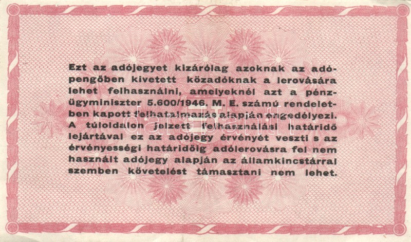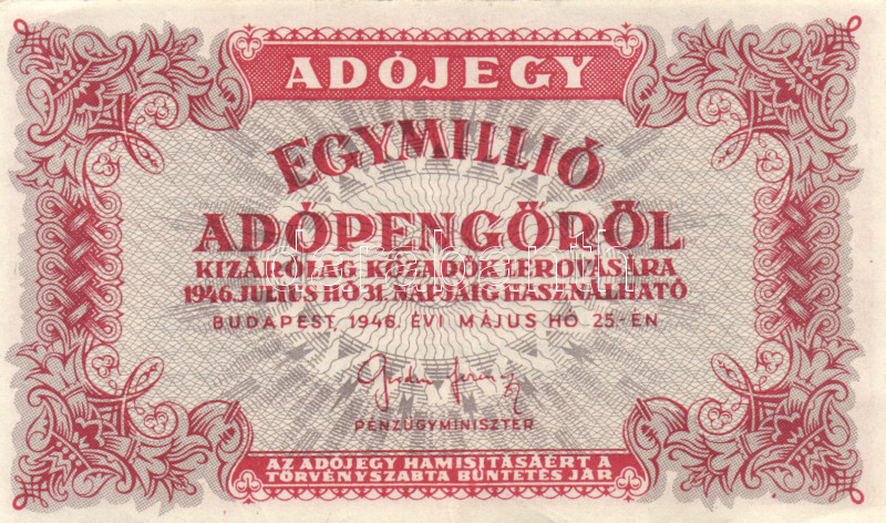 Leírás: 1946. 1.000.000AP (3x)fehér papír T:II