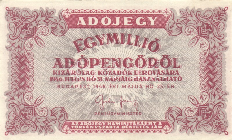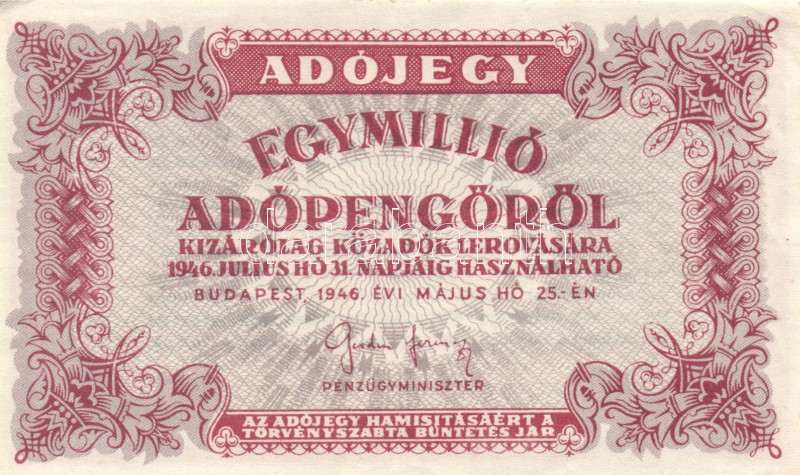 1946. 1.000.000AP (3x)fehér papír T:II https://www.darabanth.com/hu/169-Gyorsarveres/169.0/Numizmatika/Magyar-bankjegyek~4000128/1946-1000000AP-3xfeher-papir-TII~II560648