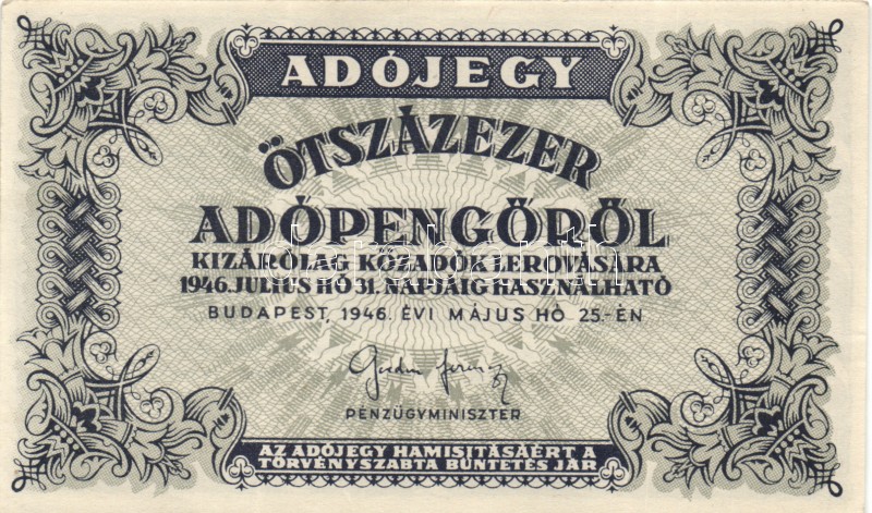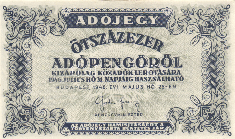 Leírás: 1946. 500.000AP (2x) kétféle színváltozat T:I-(sarokkopás)