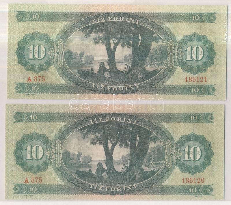 Leírás: 1962. 10Ft (2x) egymást követő sorszámmal! T:I