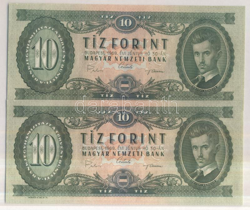 Leírás: 1969. 10Ft (2x) egymást követő sorszámmal! T:I