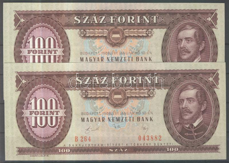 1989. 100Ft (2x) egymást követő sorszámmal! T:I