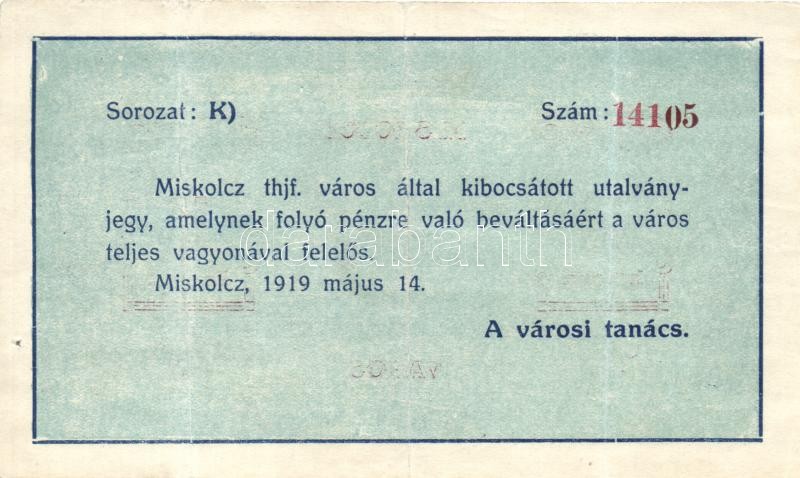 Leírás: Miskolc 1919.május 14. 10K városi szükségpénz T:II-