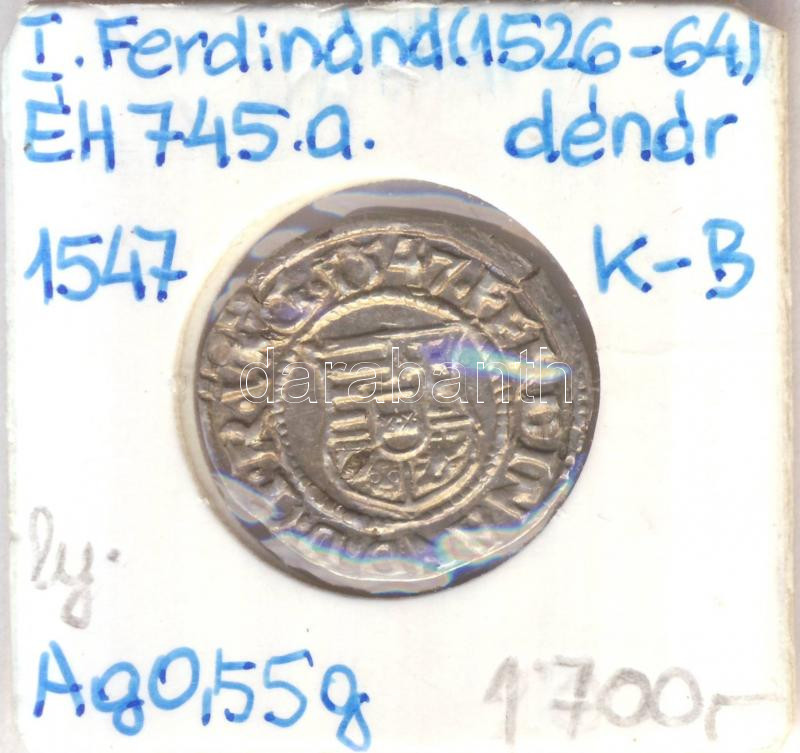Leírás: 1547K-B Denár Ag "I. Ferdinánd" (0,55g) T:2 rep.
