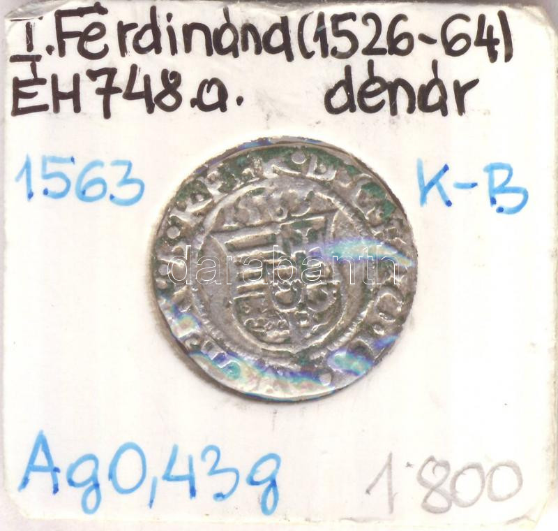 Huszár 936., Ung... https://www.darabanth.com/hu/169-Gyorsarveres/169.0/Numizmatika/Magyar-fem-es-ezustpenzek~4000129/1563K-B-Denar-Ag-I-Ferdinand-0-43g-T2-3Cbr3EHuszar-936-Unger-II-748a~II569678