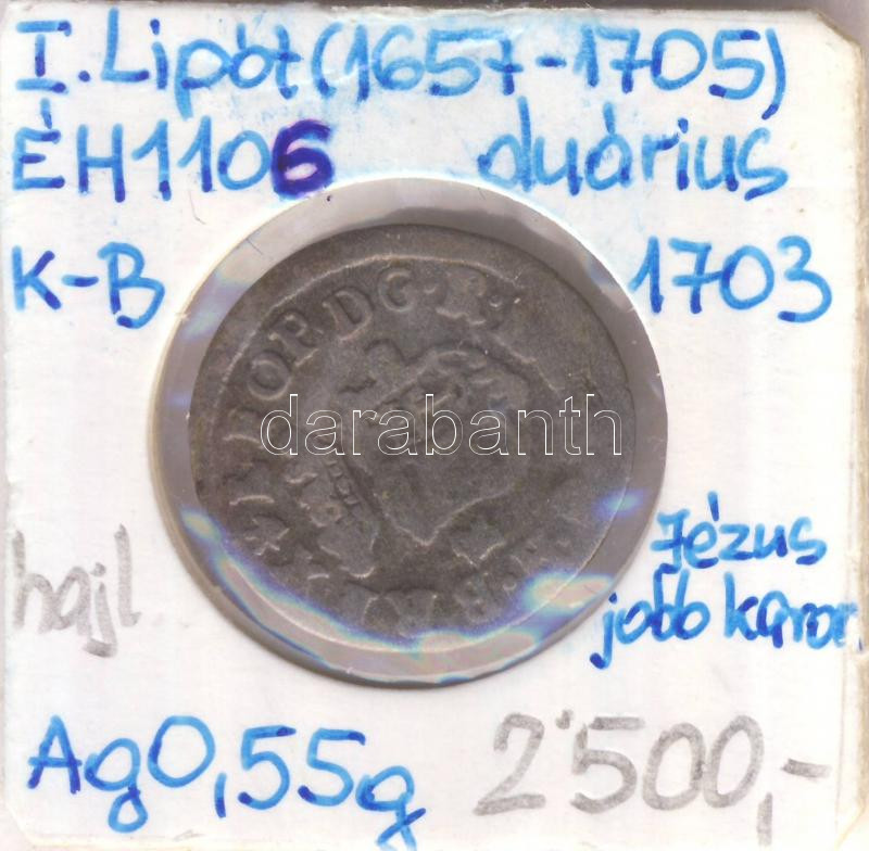 Hu... https://www.darabanth.com/hu/169-Gyorsarveres/169.0/Numizmatika/Magyar-fem-es-ezustpenzek~4000129/1703KB-Duarius-Ag-I-Lipot-Jezus-jobb-karon-0-55g-T3-3Cbr3EHuszar-1500-Unger-II-1105~II569791