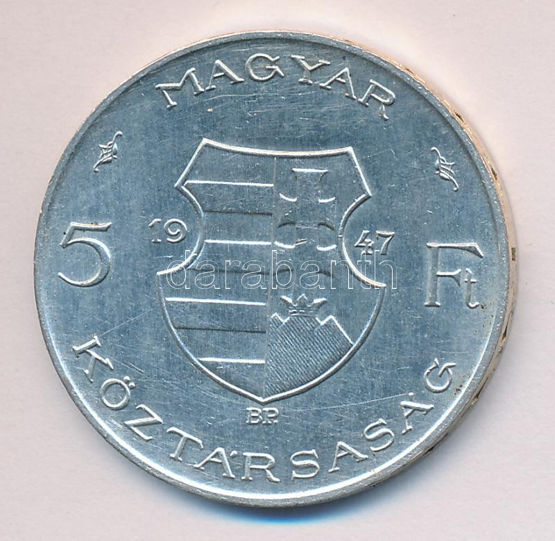 Leírás: 1947. 5Ft Ag "Kossuth" T:2