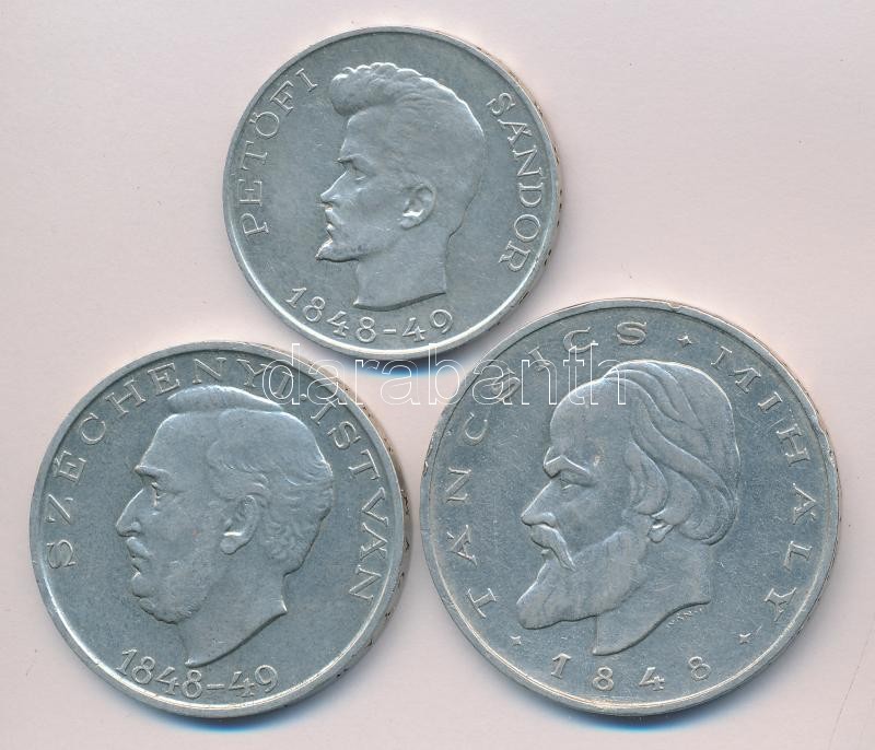 1948. 5Ft "Petőfi" + 10Ft "Széchenyi" + 20Ft "... https://www.darabanth.com/hu/169-Gyorsarveres/169.0/Numizmatika/Magyar-fem-es-ezustpenzek~4000129/1948-5Ft-Petofi-plus-10Ft-Szechenyi-plus-20Ft-Tancsics-Ag-sor-T2-ph~II570951