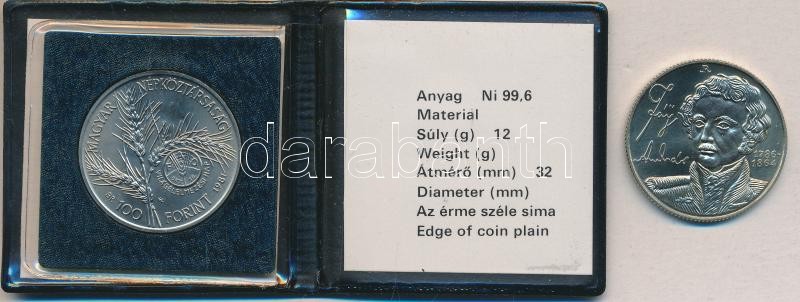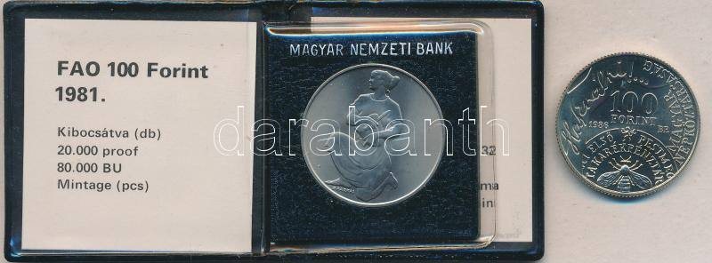 Leírás: 1981. 100Ft "FAO" T:PP Eredeti tokban, tanúsítvánnyal! + 1986. 100Ft "Fáy András" T:BU