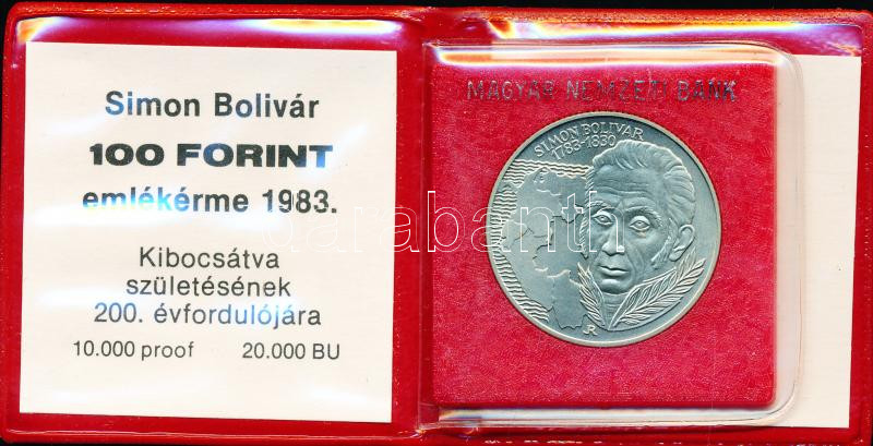 Leírás: 1983. 100Ft "Simon Bolivár" alpakka T:BU Eredeti tokban, tanúsítvánnyal!