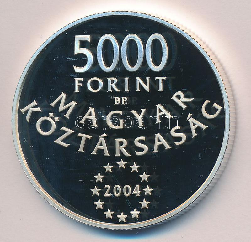 2004. 5000Ft Ag "Magyarország az EU tagja" T:PP https://www.darabanth.com/hu/169-Gyorsarveres/169.0/Numizmatika/Magyar-fem-es-ezustpenzek~4000129/2004-5000Ft-Ag-Magyarorszag-az-EU-tagja-TPP~II529522