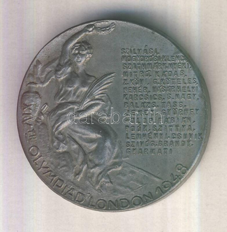 Leírás: 1948. "XIV. Olimpia London" hadifém emlékérem, bajnoki nevekkel a hátlapon (40mm) dísztokban T:2