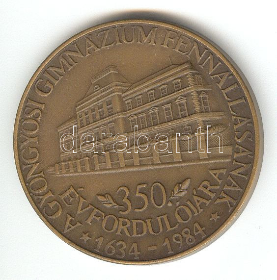 Leírás: 1984. "A Gyöngyösi Gimnázium Fennállásának 350. évfordulójára" Br emlékérem (42mm) T:1