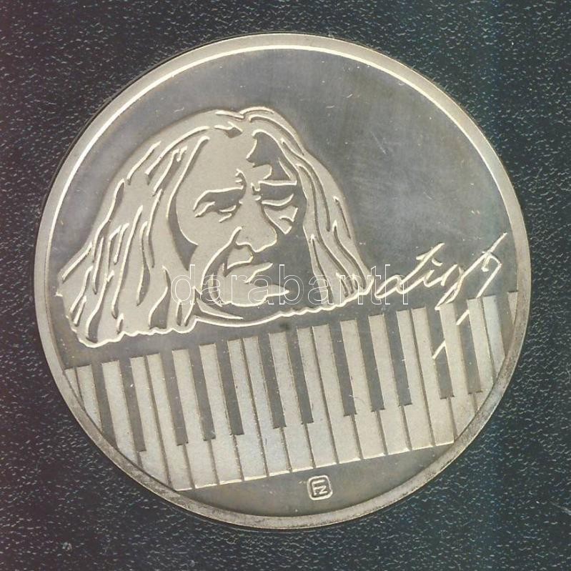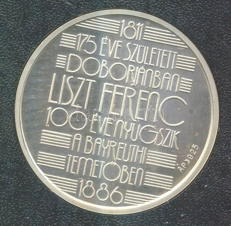 1986. "175 éve született Doborjánban Liszt Ferenc - 100 éve nyugszik a Bayreuthi temetőben" Ag emlékérem ÁP dísztokban és tanúsítvánnyal (12g/0.925/32mm) T:PP Csak 3000db!