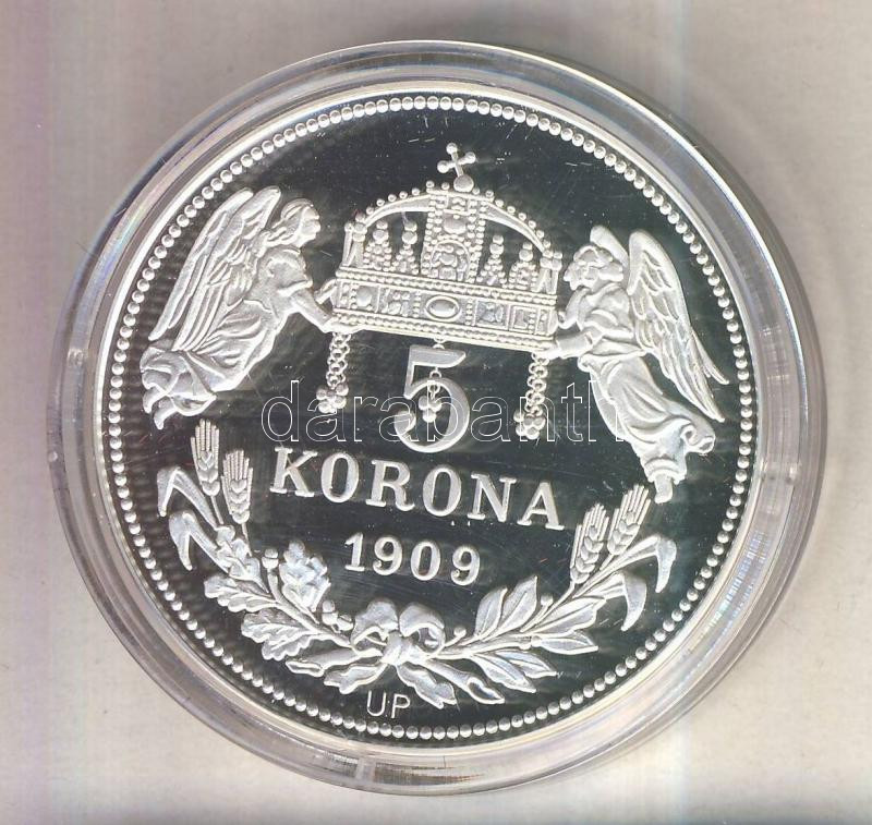 Leírás: DN "Királyi koronák / 1909 5K - I. Károly (Róbert)" Ag emlékérem (20g/0.999/38,61mm) T:PP Tanúsítvánnyal, csak 2000db