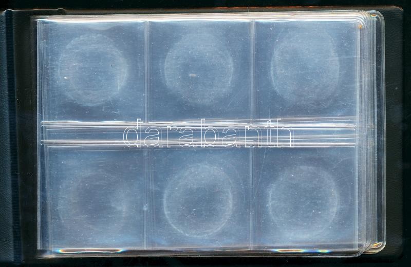 Leírás: LINDNER kisméretű műbőr éremtartó album 7 betétlappal, minden lapon 6 érmének hely (4x4cm), jó állapotban