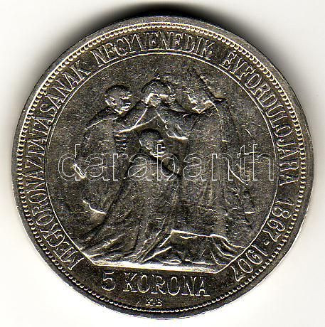 Leírás: 1907 5K 40 éves kor. jub. ezüst T:2/3+