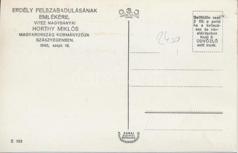Szászrégen, bevonulás / entry of the Hungarian troops, Horthy https://www.darabanth.com/hu/17-Nagyaukcio/17.1/Magyar-kepeslapok/Erdely~5483/Szaszregen-bevonulas-entry-of-the-Hungarian-troops-Horthy~II791862