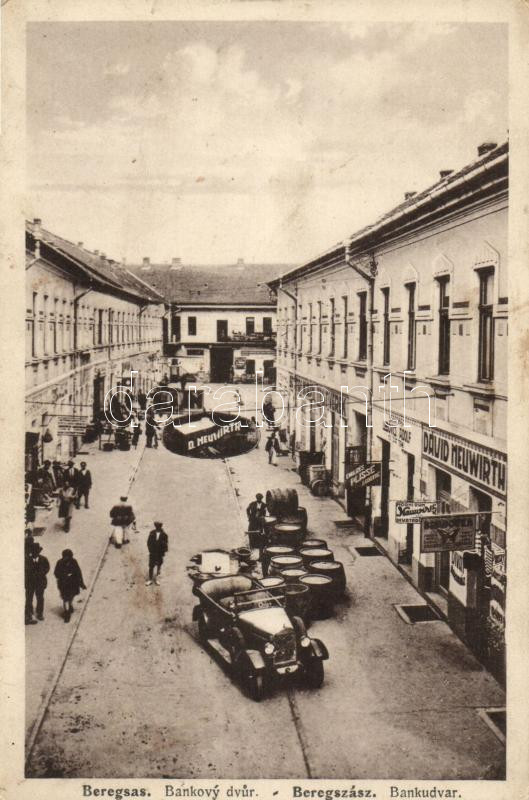 Beregszász, Bankudvar, Bankovy dvur / David Neuwirth's shop, automobil... https://www.darabanth.com/hu/17-Nagyaukcio/17.1/Magyar-kepeslapok/Karpatalja~5485/Beregszasz-Bankudvar-Bankovy-dvur-David-Neuwirths-shop-automobile~II786365