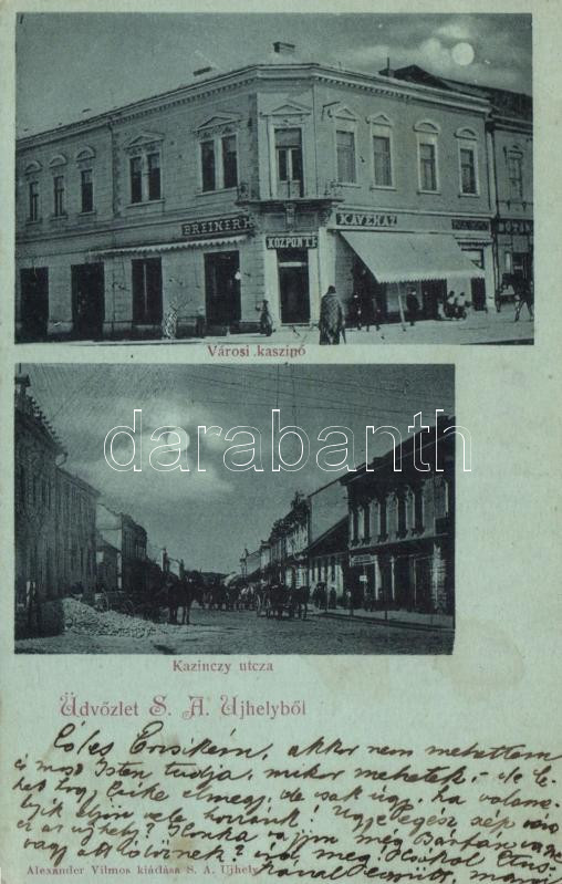 1899 Sátoraljaújhely, városi kaszinó, Breiner Kávéház, Kazinczy utca; ... https://www.darabanth.com/hu/17-Nagyaukcio/17.1/Magyar-kepeslapok/Magyarorszag~5482/1899-Satoraljaujhely-varosi-kaszino-Breiner-Kavehaz-Kazinczy-utca-Alexander-Vilmos-kiada~II783570