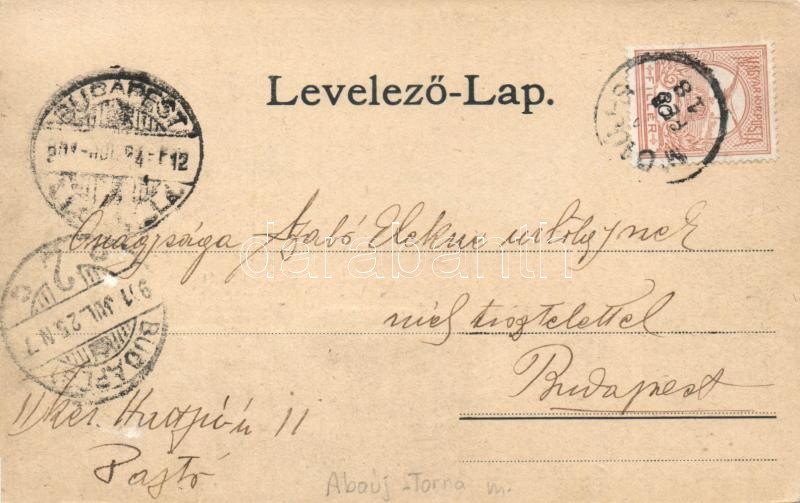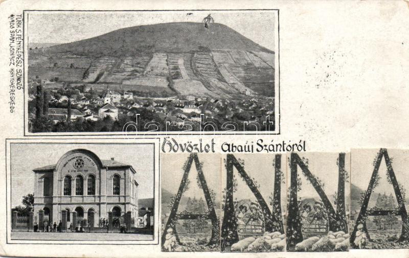 Leírás: Abaújszántó, zsinagóga; kiadó Spáh Ignácz könyvkereskedő (ráragasztott Anna felirattal)