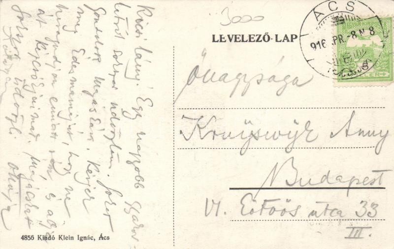 Ács cukorgyár; Klein Ignác kiadása https://www.darabanth.com/hu/17-Nagyaukcio/17.1/Magyar-kepeslapok/Magyarorszag~5482/Acs-cukorgyar-Klein-Ignac-kiadasa~II786669