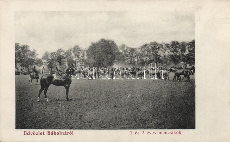 Bábolna, méncsikók; Fischer Gyula kiadása https://www.darabanth.com/hu/17-Nagyaukcio/17.1/Magyar-kepeslapok/Magyarorszag~5482/Babolna-mencsikok-Fischer-Gyula-kiadasa~II790192