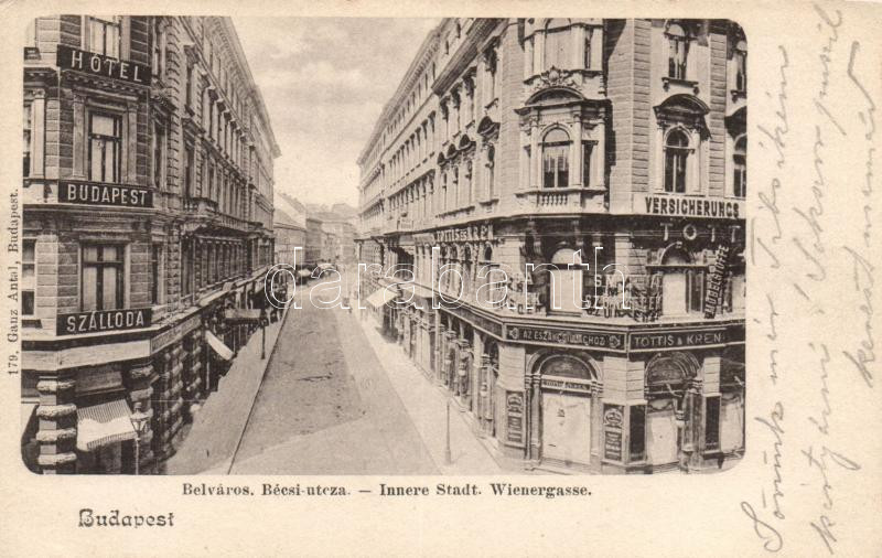 Leírás: Budapest V. Bécsi utca, Hotel Budapest és Bútoráruház az Északi Csillaghoz