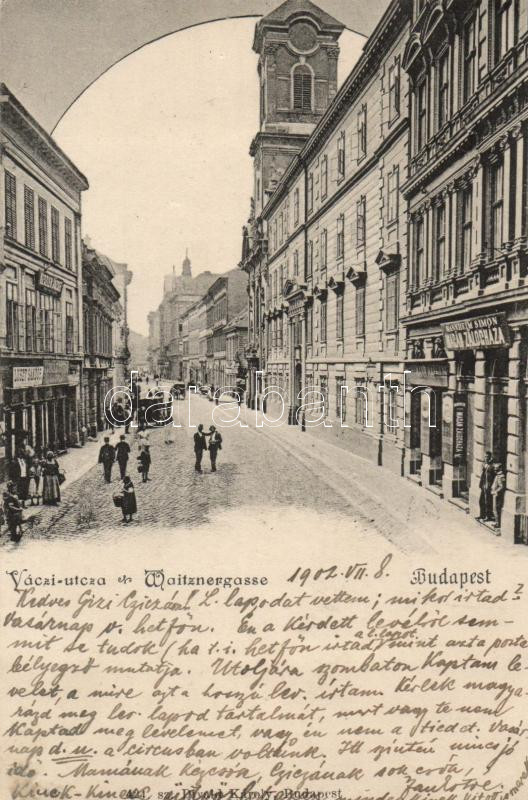 Leírás: Budapest V. Váci utca, Mannheim Simon magán zálogháza, Luszt Sándor és Keszler József kereskedései; Divald Károly