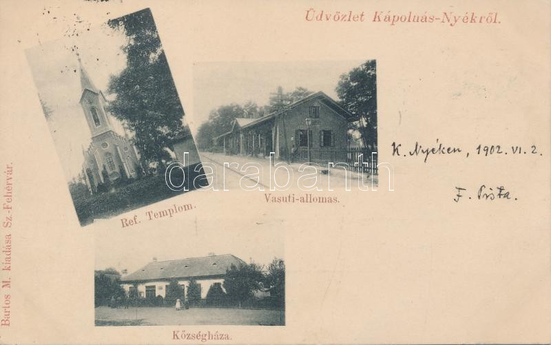 Kápolnásnyék, Vasútállomás, református templom, községháza https://www.darabanth.com/hu/17-Nagyaukcio/17.1/Magyar-kepeslapok/Magyarorszag~5482/Kapolnasnyek-Vasutallomas-reformatus-templom-kozseghaza~II792565