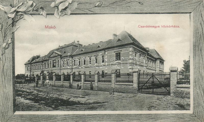 Makó, Csanád megye közkórháza; Vészi Dezső kiadása https://www.darabanth.com/hu/17-Nagyaukcio/17.1/Magyar-kepeslapok/Magyarorszag~5482/Mako-Csanad-megye-kozkorhaza-Veszi-Dezso-kiadasa~II785856