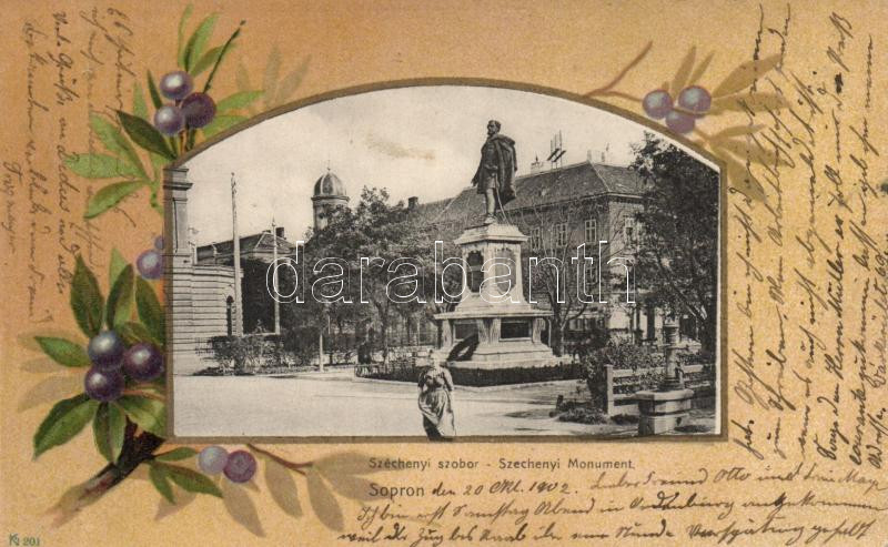 Sopron, Széchenyi-szobor; Blum N. kiadása, floral litho https://www.darabanth.com/hu/17-Nagyaukcio/17.1/Magyar-kepeslapok/Magyarorszag~5482/Sopron-Szechenyi-szobor-Blum-N-kiadasa-floral-litho~II781546