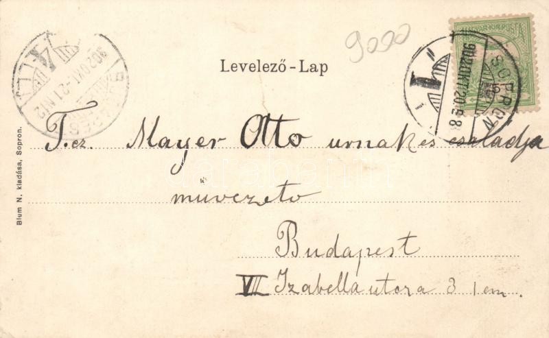 Leírás: Sopron, Széchenyi-szobor; Blum N. kiadása, floral litho