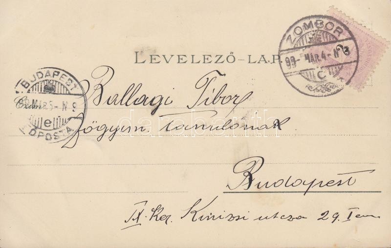 Leírás: 1899 Zombor, floral litho; kiadja Schön Adolf