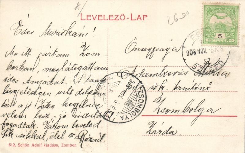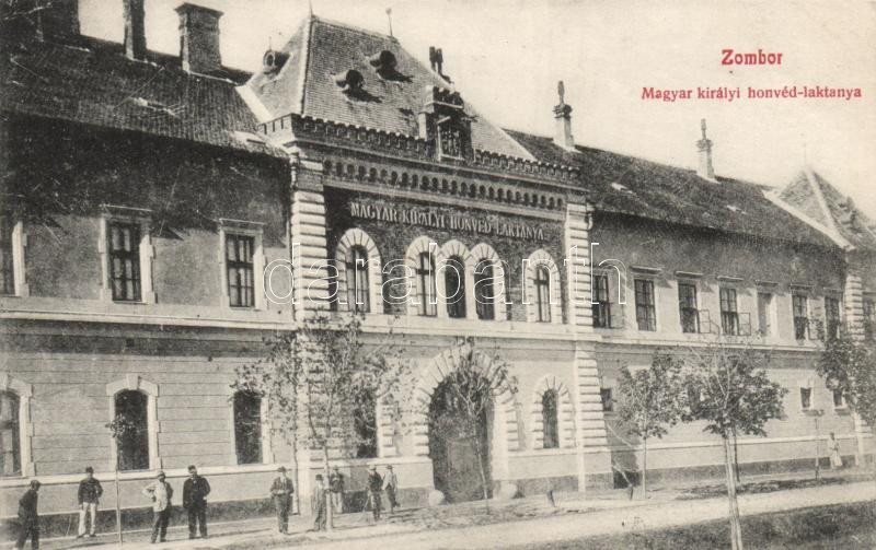 Zombor, honvéd laktanya; Schön Adolf kiadása / military barracks https://www.darabanth.com/hu/17-Nagyaukcio/17.1/Magyar-kepeslapok/Vajdasag~5487/Zombor-honved-laktanya-Schon-Adolf-kiadasa-military-barracks~II787621