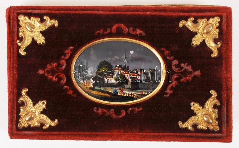 cca 1840-1860 "Emlékkönyv" Közel 80 különböző nagyrészt magyar nyelvű, kézzel írt és rajzolt emléklap bársony borítású, kézzel festett miniatúrával díszített, szép állapotú albumban /