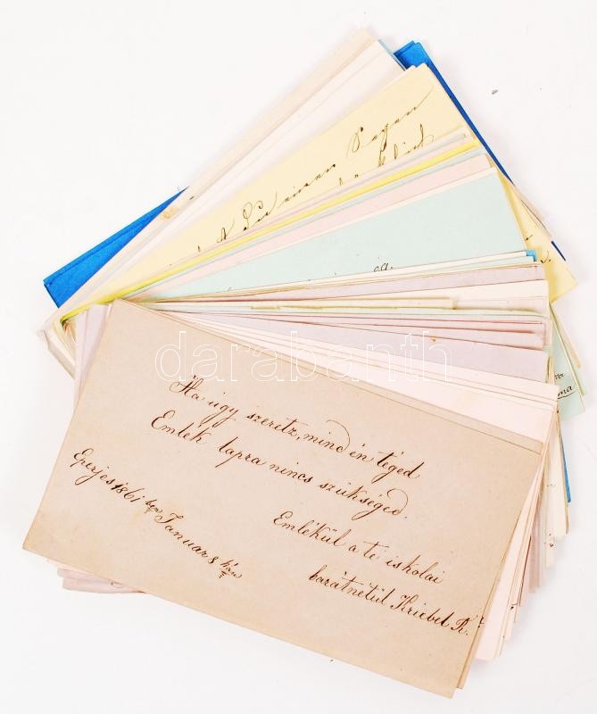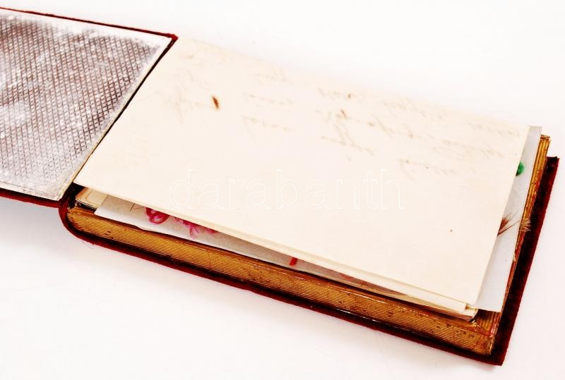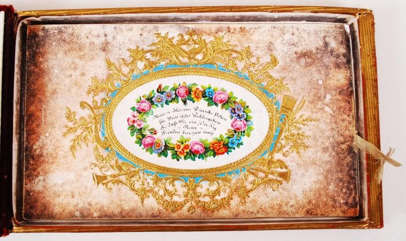 cca 1840-1860 Collection of about 80 hand written or drawn memory cards in German and in Hungarian in nice album decorated with hand painted miniature