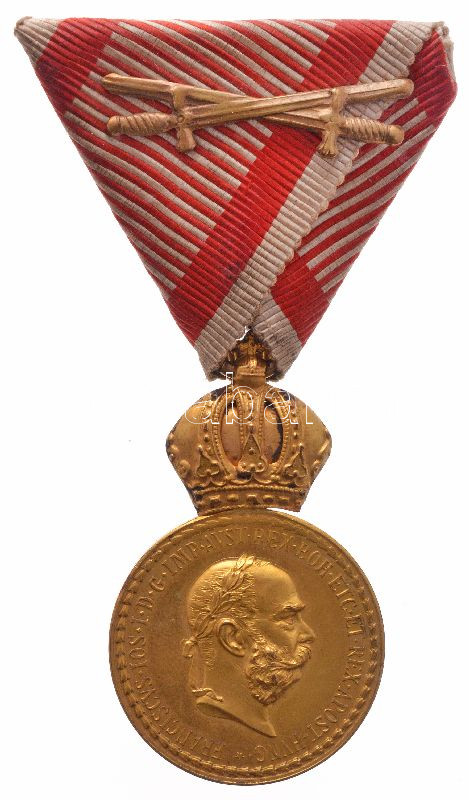 1914-1916. "Bronz Katonai Érdemérem a katonai érdemkereszt szalagján, kardokkal" kitüntetés eredeti "Zimbler Wien VII" adományozói dísztokban T:1-