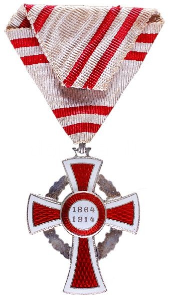 Hungary 1914. "Red-Cross Merit Order 2nd Class with military ornament" hallmarked silver decoration on ribbon C:AU (tiny enamel miss)