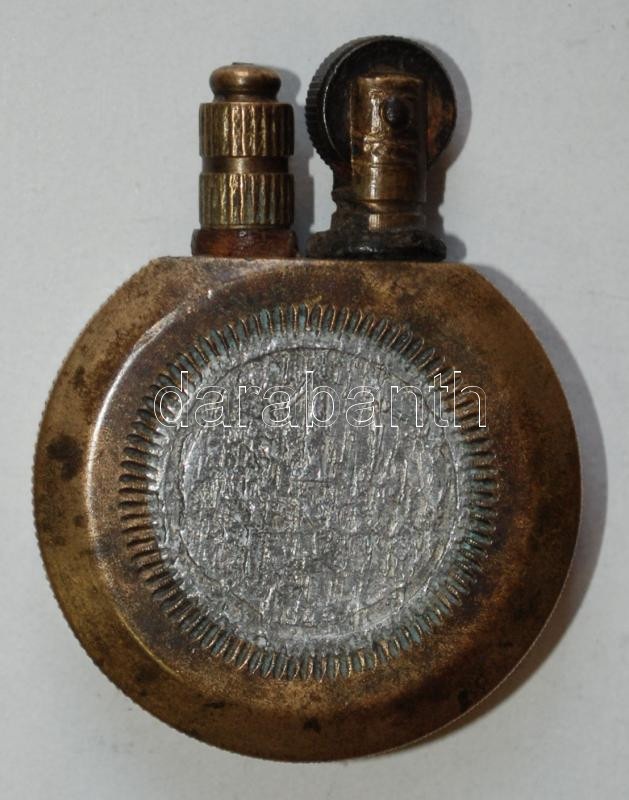 Leírás: Cca 1910 réz öngyújtó, d:4 cm