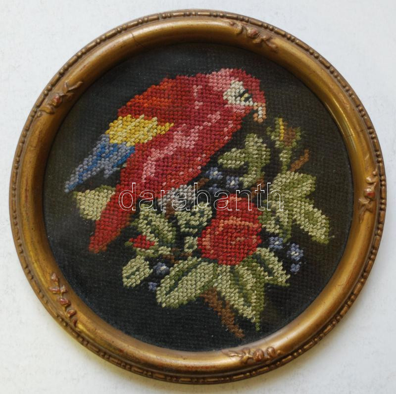 Gobelin madárka, kör alakú szép régi keretben, d:17 cm https://www.darabanth.com/hu/170-Gyorsarveres/170.0/Festmeny-mutargy-papirregiseg-egyeb/Bolhapiac~500017/Gobelin-madarka-kor-alaku-szep-regi-keretben-d17-cm~II573157