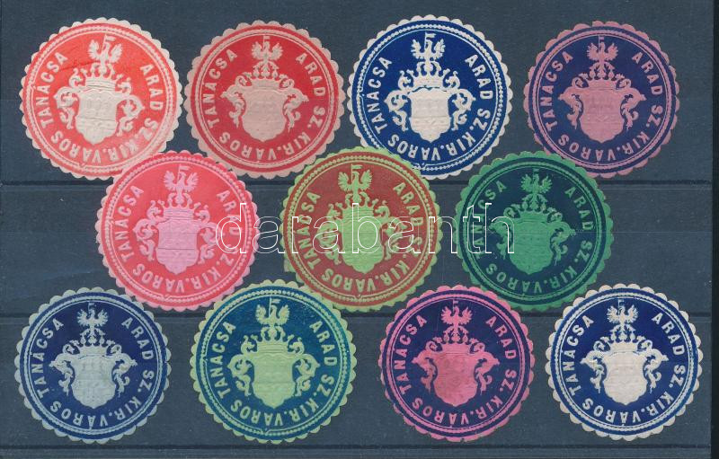 Leírás: Arad Sz. Kir. Város Tanácsa 11 db levélzáró