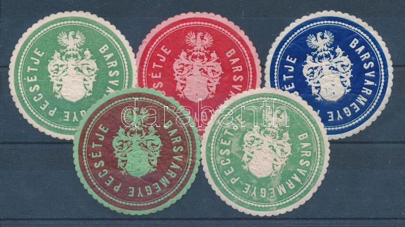 Leírás: Barsvármegye pecsétje 5 db levélzáró