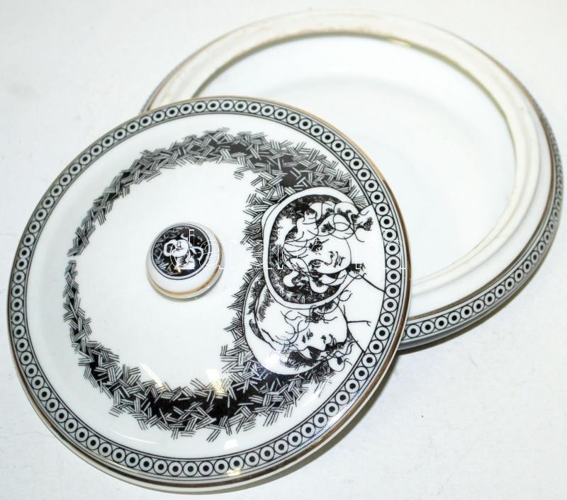 Leírás: Szász Endre u.: Arcok c. Hollóházi porcelán bonbonnier /