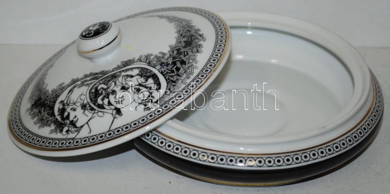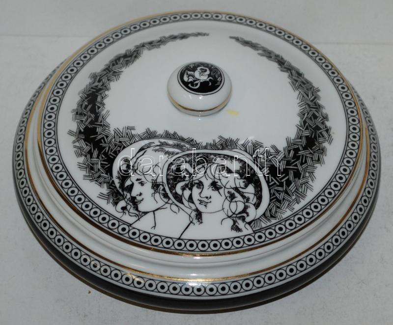 Szász Endre u.: Arcok c. Hollóházi porcelán bonbonnier, jelzett /