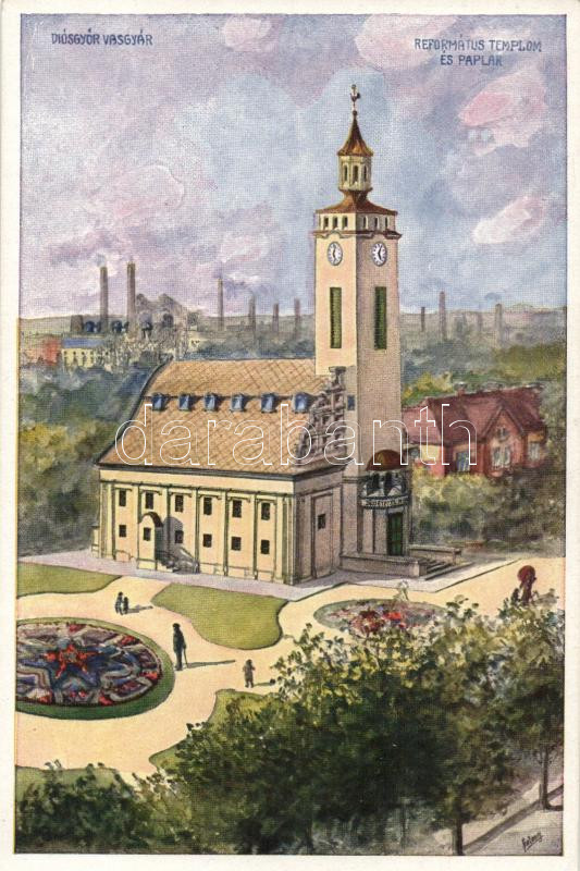 Diósgyőr vasgyár, Református templom, artist signed https://www.darabanth.com/hu/170-Gyorsarveres/170.0/Kepeslapok/Magyarorszag~200005/Diosgyor-vasgyar-Reformatus-templom-artist-signed~II572665