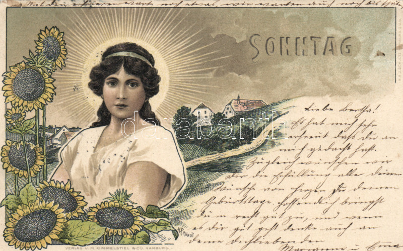 Sonntag, Art Nouveau litho https://www.darabanth.com/hu/170-Gyorsarveres/170.0/Kepeslapok/Muvesz~500099/Sonntag-Art-Nouveau-litho~II561237