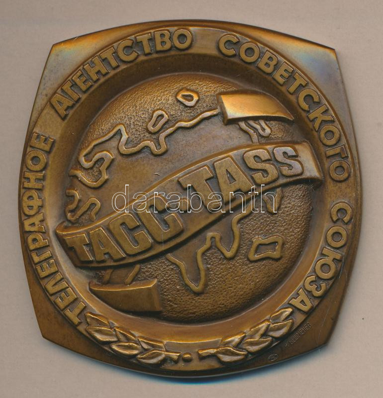 Leírás: Szovjetunió ~1970. "TASS - Szovjet Távíró Ügynökség" Br plakett (73x73mm) T:2